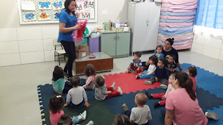Realizamos esta propostas na sala da turma do Nível 3, um novo ambiente que nos proporcionou novas descobertas com as cores.